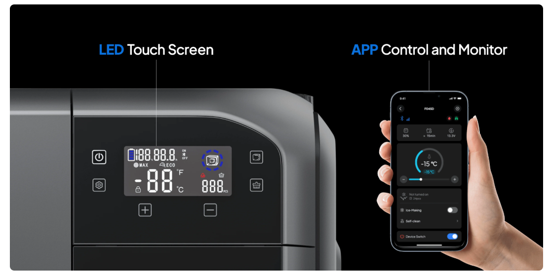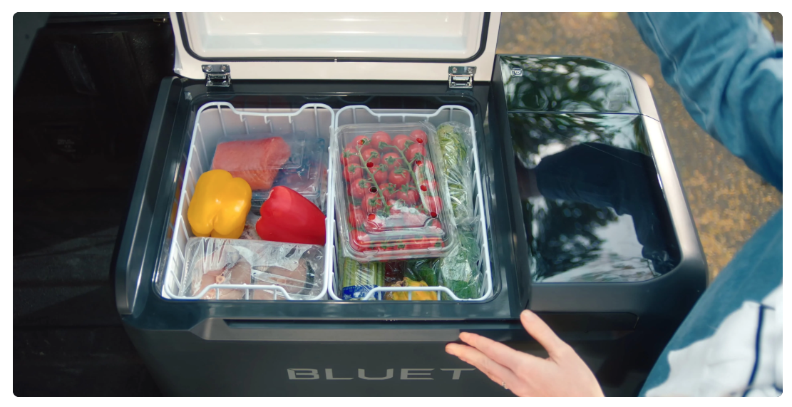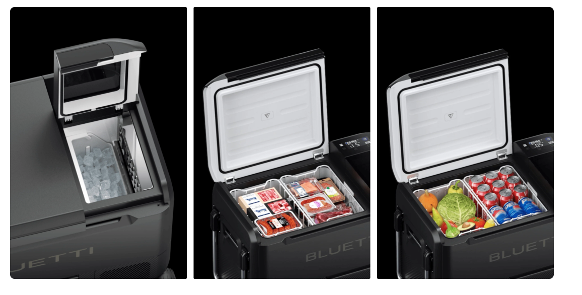 Bluetti 3 -in-1 MultiCooler (F045D) | Portable Fridge Freezer IceMaker with Optional Built in B70, with 716.8Wh per pack, it can deliver up to 3 days of continuous power for the MultiCooler without extenal power charging.